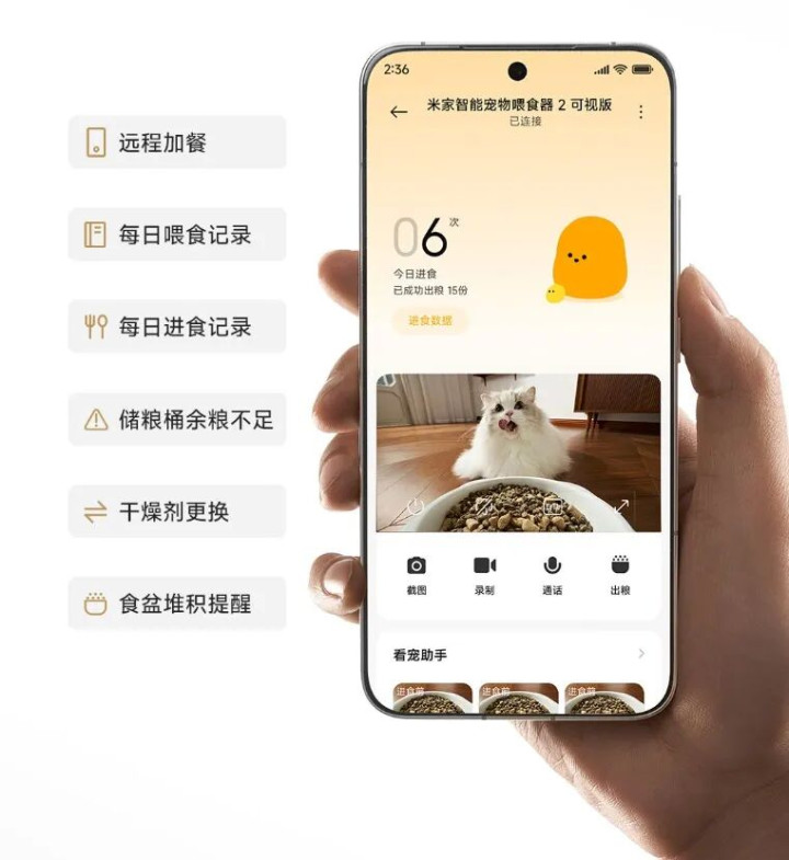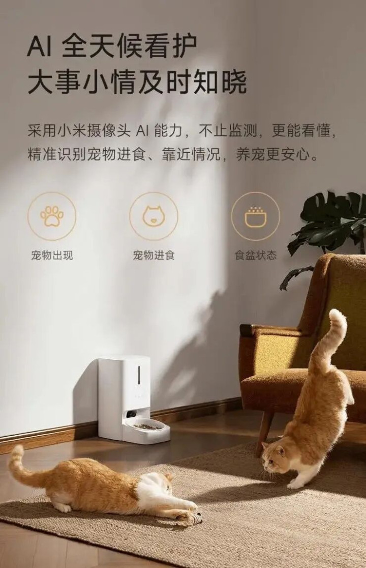 更离谱的是,这款米家智能宠物喂食器 2 可视版 ,还上了小米录像头的 AI 智商。
