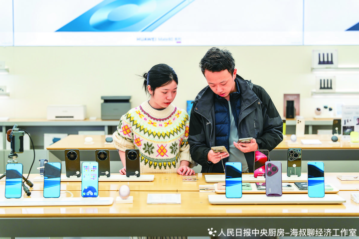 近日,在贷款贴息、门店让利等优惠重复下,陕西省西安市汽车、家电、数码智能家具等畛域奢侈阛阓热度稳步攀升有用引发奢侈者购买关注。推文奢侈者在西安市一家品牌销售店内选购手机。张成摄(东谈主民视觉)