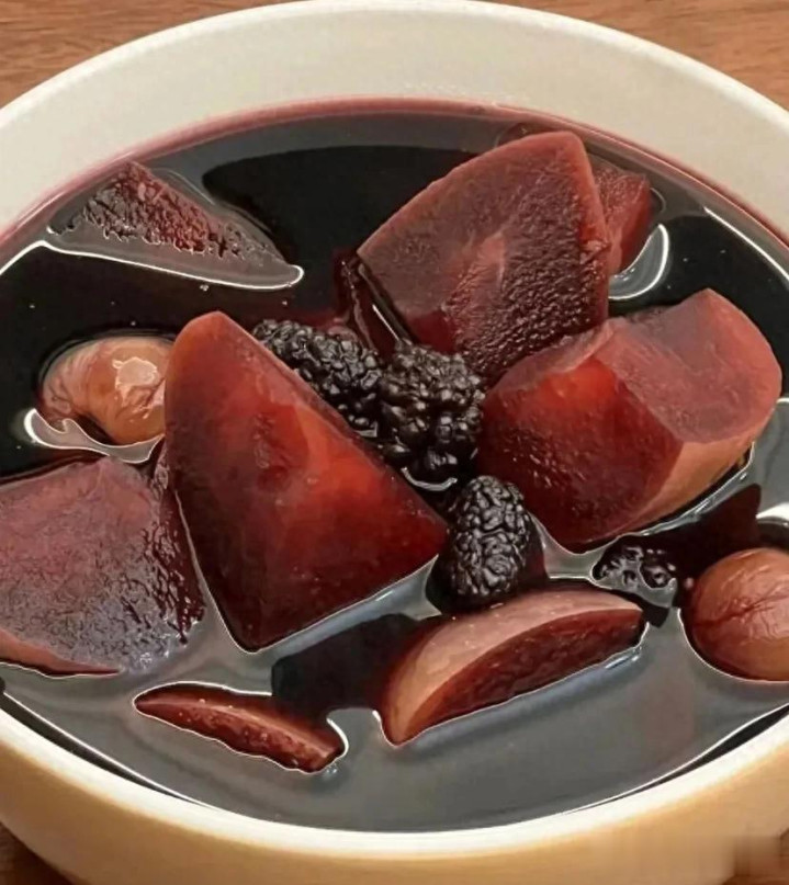 桑葚补肝血、滋肝肾,苹果健脾和胃,两者搭配,补而不燥,既能补肝血,又能幸免给肝脏添包袱,相宜泛泛永远喝。