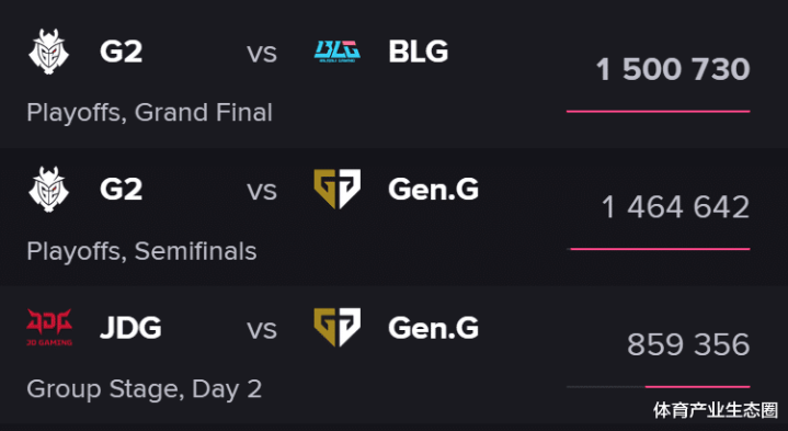 从不雅赛数据上来看,本届前锋赛收成的情切进度也要好于昨年。凭据Esports Charts公布的数据,决赛最高同期在线不雅看东谈主数跳跃150万,凤凰体育(FHSports)半决赛G2对GenG的最高不雅赛东谈主数也达到了146万。而同比昨年,这两个数字别离是110万和86万。