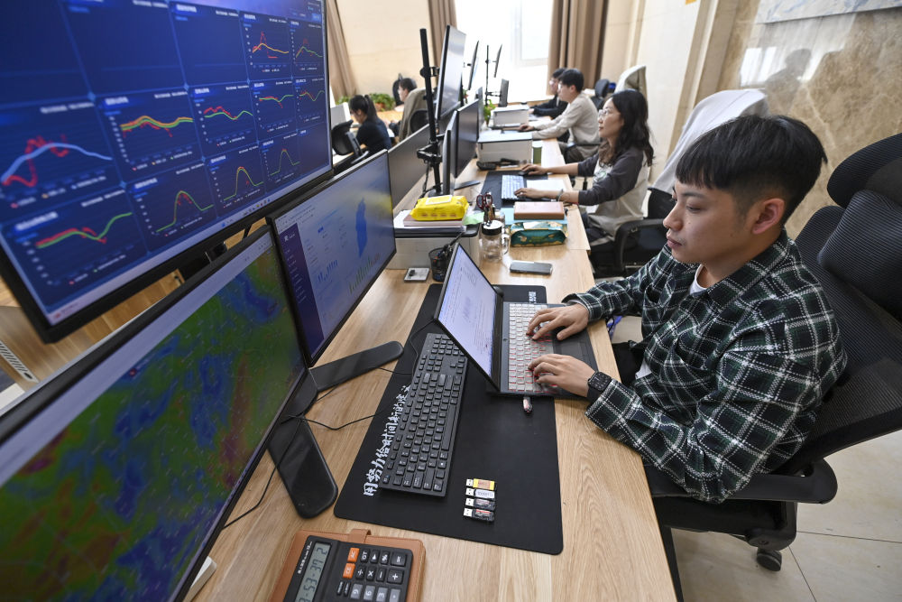 走进山西电力交往大厅,记者看到屏幕上及时炫耀火电出力量、征象发电量等数据。