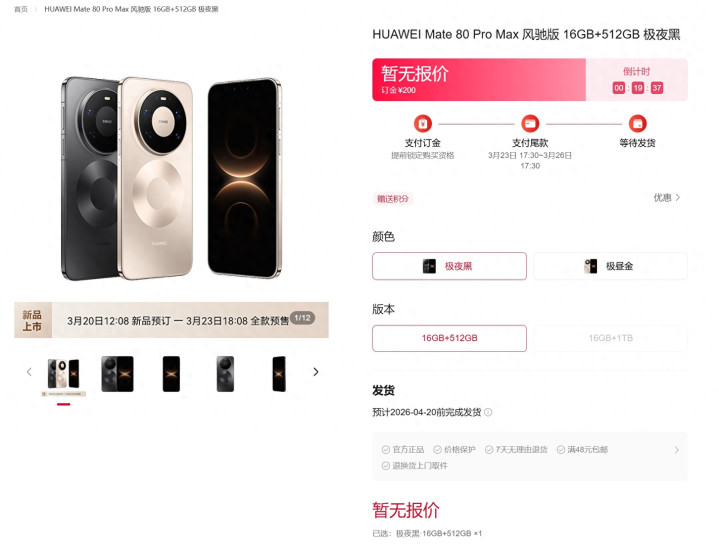 现在,华为Mate80 Pro Max 风驰版已上架官方商城,提供极夜黑、极昼金两款配色,以及16GB+512GB、16GB+1TB两种存储版块。官方暂未公布更多详备建树,瞻望其除了影像除外,其他建树跟华为Mate 80 Pro Max保执一致,正面继承双层OLED超透亮灵珑屏,差别率达1.5K级别,瞻望维持1-120Hz LTPO自顺应刷新率,峰值亮度8000nit;内置6000mAh以上大电板,维持100W有线快充。